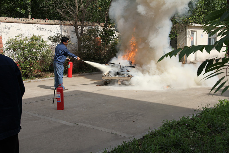 9时5分,兼职消防员郑中华在圆织机车间西门附近发现火灾,第一时间向现场总指挥蒋余凯报告,蒋余凯命令各应急救援组进行应急响应,同时向全体员工下达启动应急救援方案的命令。其他同事听到警报后,捂着鼻子,跟着疏散组迅速撤离到安全的位置。演习过程中,由张光林演示了灭火器的使用步骤及灭火过程中应该注意的有关事项。由人和公司和物流公司人员组成的应急救援队,立即赶赴火灾现场,拉水带,提灭火器,站在上风口对着火点进行扑灭,防止灾情蔓延。在施救过程中,发现有人昏迷,通讯组接到报告,马上向总指挥汇报,蒋余凯命令搜救组前去救出受伤人员,组织医疗组一行三人携带医疗抢救箱立即赶赴火灾现场,去抢救受伤人员。演练后,各应急救援小组向总指挥汇报情况,并对出现的各种细节进行分析。