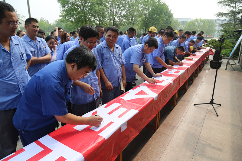 随后,公司副总经理陈海天带领全员,就强化安全意识、保证安全生产进行了庄严宣誓。公司领导带头进行了安全签名活动,营造了"安全生产月"活动的浓厚氛围。