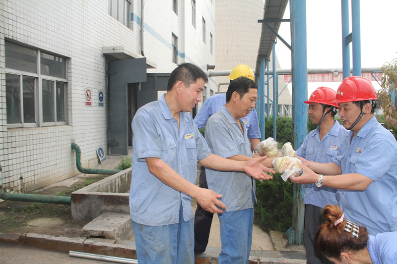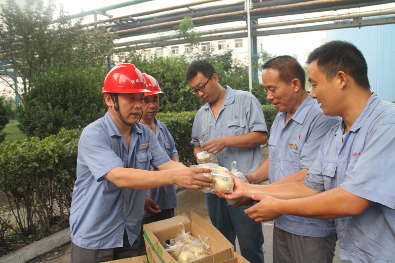 中秋期间公司外委施工单位为赶工期也未放假,总经理王允来也为他们送去了温暖,为他们准备了免费的饭菜,发放了月饼和苹果,施工单位工人领到月饼和苹果后感激的说:"感谢王总,感谢金威热电,我们长期在外打工,节日期间最思念亲人,但是,金威热电让我们感受到了家的温暖,在外被人关心,被人关注,心里感觉暖暖的。"
