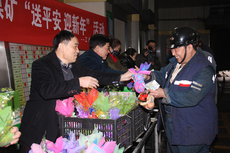 12月24日,太平煤矿工会女工委联合后勤服务中心,组织部分女工协管员到上井口为上下井职工发放"平安果"、牛奶等节日礼品,开展"送平安、迎新年"活动,在全矿营造了平安祥和的浓浓氛围。