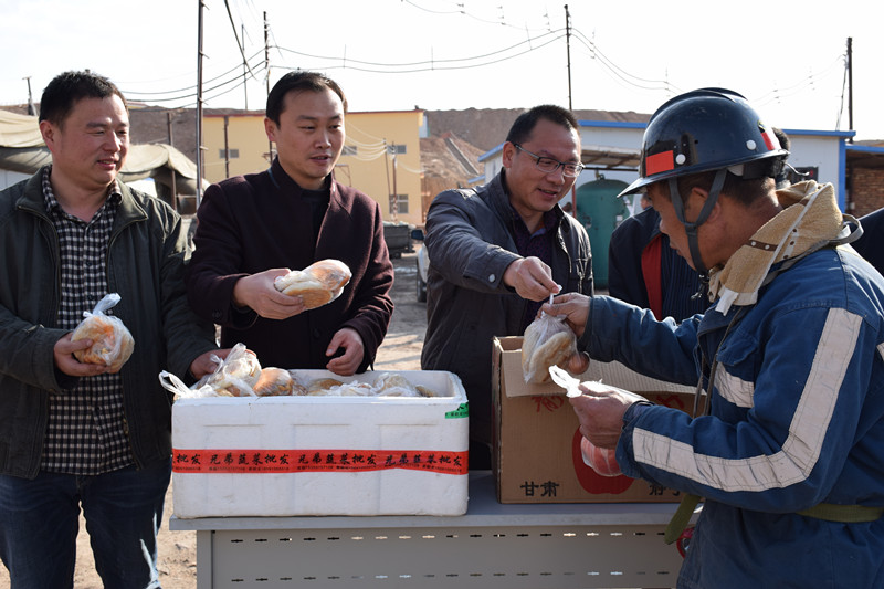 5月1日,为慰问节日期间坚守在生产一线的干部职工,宁夏开云app登录入口公司联合罗花崖煤矿项目部、小泉煤矿项目部,为当日上下井职工发放苹果、营养快线、鸡蛋等节日礼品,开展"庆五一、送温暖"活动,在公司及公司各项目部营造关爱职工、确保安全生产的浓浓氛围。