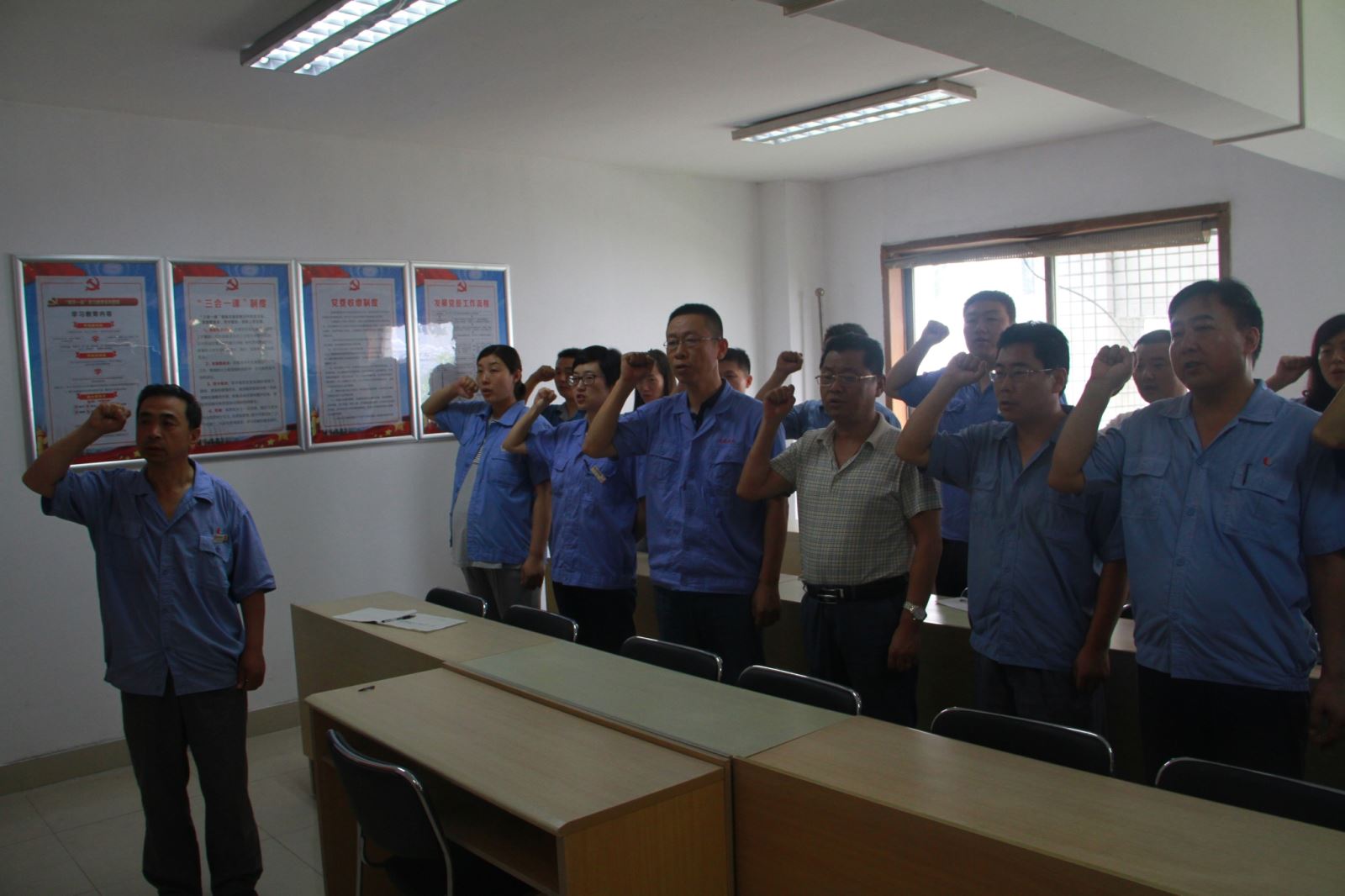 23名党员高举右拳,面向党旗,在领誓人的带领下郑重宣誓,表达了他们对党的无限忠诚与热爱。最后,该公司总支书记、总经理王允来同志对全体党员通知提出三点要求:一是要牢记党章,不忘使命;二是要以身作则,谦虚谨慎;三是要有强烈的组织纪律观念,自律、自警、自重,在各自岗位上发挥模范带头作用,为推动公司各项工作再上新台阶做出更大的贡献。
