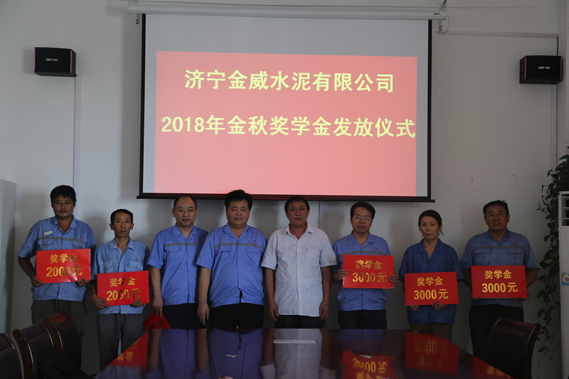 8月28日,金威水泥在三楼会议室举行2018年"金秋奖学金"发放仪式,对2018年夏季高考中被全日制专科及以上院校录取的职工子女发放奖学金。