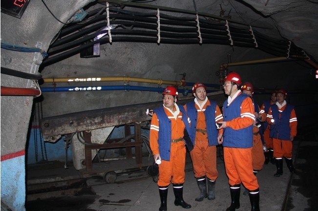 4月3日,李合军总经理在副总工程师兼规划发展部经理王立伟、人力资源部经理楚旭峰、办公室主任王夫亭的陪同下,到太平煤矿检查指导工作。太平煤矿矿长刘岭、生产副矿长刘炳法、机电副矿长任广华等矿领导陪同下井检查。