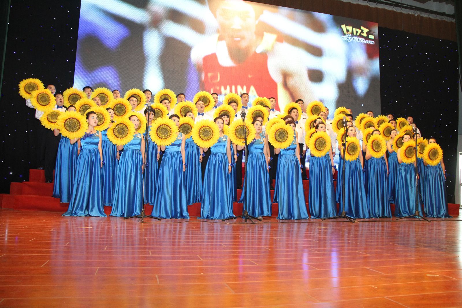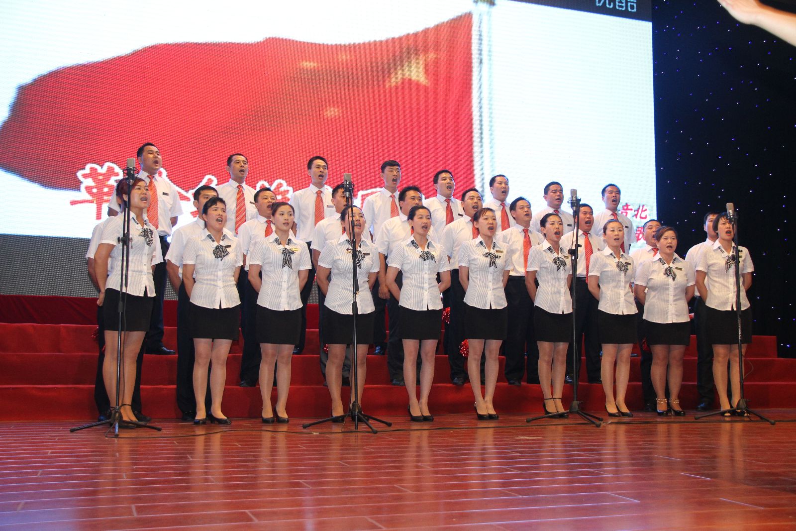 演出结束后,李合军、张玉标、汤保民、邵作胜、刘炳法等领导同志上台与获奖合唱队代表合影留念。