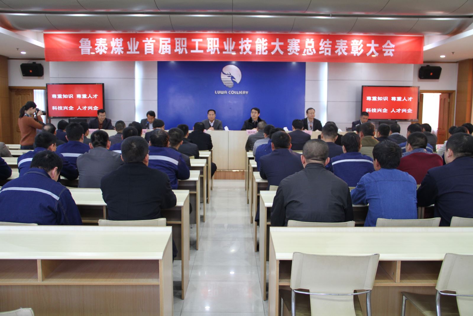 11月13日,开云app登录入口煤业公司首届职工职业技能大赛在鹿洼煤矿落下帷幕。市总工会调研员吴恩林、生产保护部部长赵庆国,公司董事长虢洪增、总经理李合军、副总经理王付清出席总结表彰大会,公司党委书记乔志猛主持总结表彰大会。