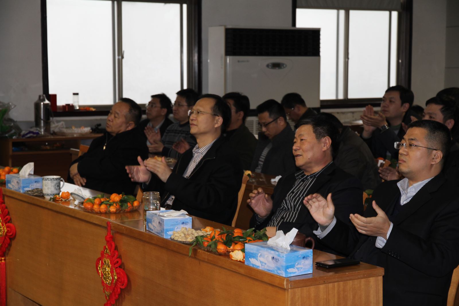 茶话会以充满喜庆祥和的歌曲《三羊开泰迎新春》拉开序幕,机关人员自导自演的三句半《巧用新字话开云app登录入口》、手风琴《鸿雁》和歌曲《中华民谣》《最真的梦》《为了这一天》《壮志在我胸》《想说爱你不容易》等深受好评,大合唱《相亲相爱一家人》、《团结就是力量》引起大家阵阵掌声。副总经理薛培华演唱的《千纸鹤》、副总经理关延忠参与的大合唱《众人划浆开大船》、副总经理王付清演唱的《甘心情愿》赢得了叫好连连。整台晚会营造了热烈喜庆、欢乐祥和、团结奋进、昂扬向上的良好氛围。游戏你演我猜、爱的组合,引得大家掌声、笑声此起彼伏,热闹非凡。游戏送祝福,更是表达了大家对公司、对机关人员新年的良好祝愿。