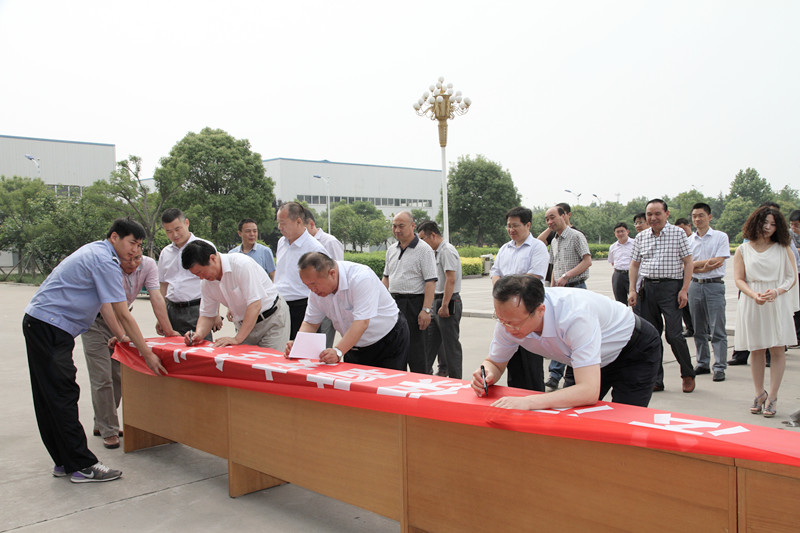 宣誓后,公司总经理李合军、副总经理薛培华、关延忠带领公司机关全体员工在"安全生产月"的横幅上签上自己的名字。一个简单的签名,不仅签下了对企业安全发展的承诺,也签下了安全工作从我做起的决心和意志。