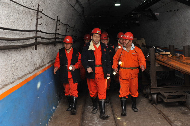 到矿后,虢洪增一行直接更换工作服下井。在井下-450米南翼胶带机大巷掘进工作面,虢洪增检查了工作面整体安全生产情况,并与掘二工区干部职工亲切交谈,询问工人精神状态,叮嘱干部职工扎实抓好安全生产工作,确保企业安全稳定。关延忠仔细检查了工作面安全生产和工程质量情况。掘二工区区长朱正强汇报了工区开展精益管理抓好工程质量、严格落实集团公司33320安全管理模式抓好现场安全管理等工作开展情况。