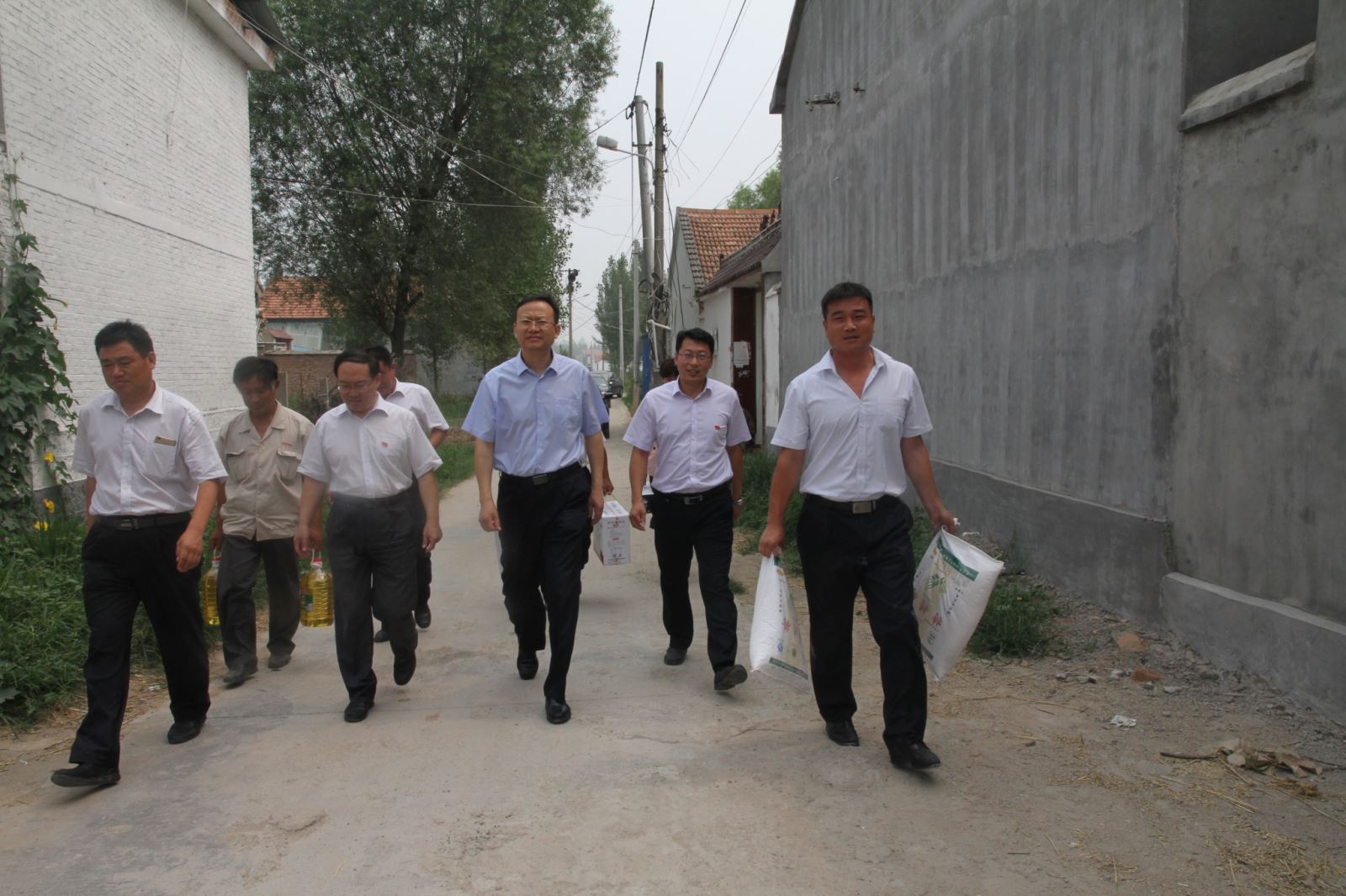 李合军一行先后深入到朱兴章(老支书)和朱洪民(老党员)家中,询问生产生活中遇到的困难,并送去大米和食用油等生活物质,祝愿他们过一个祥和美满的节日。