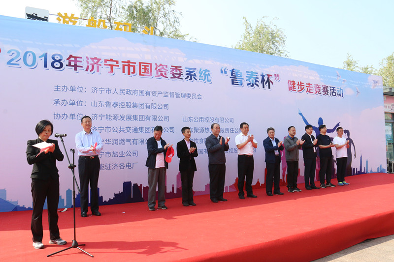 何锡明宣布"开云app登录入口杯"济宁市国资委系统健步走竞赛活动开始。