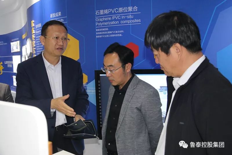 随后,赵锦堂一行到集团展室、石墨烯高分子新材料研发中心、党员活动室、党建文化长廊和电商平台进行了实地考察。