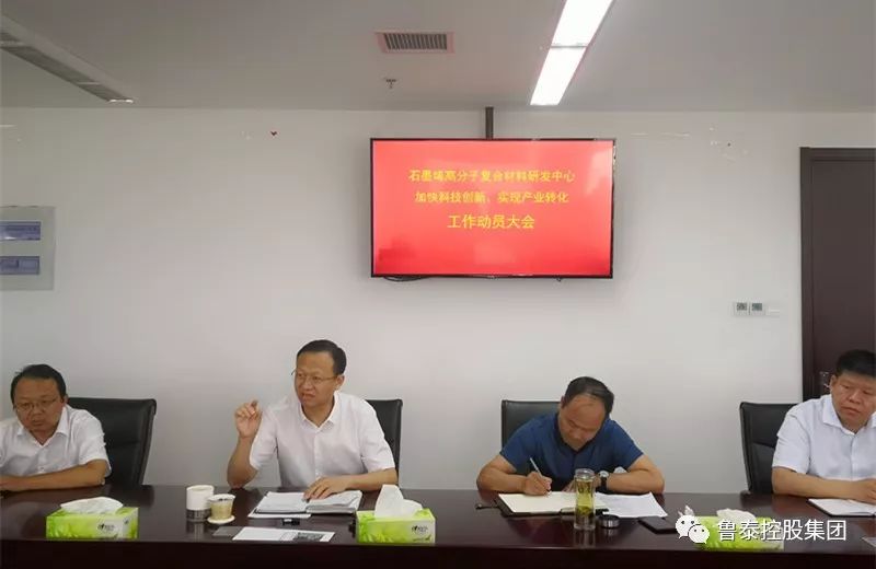 6月24日下午,石墨烯高分子复合材料研发中心“加快科技创新、实现产业转化”工作动员大会在集团总部1613会议室召开。集团公司党委书记、董事长李合军,党委副书记、总经理魏忠勋,副总经理(总工程师)鲍学彬,副总经理(总会计师)王亚平参加会议。